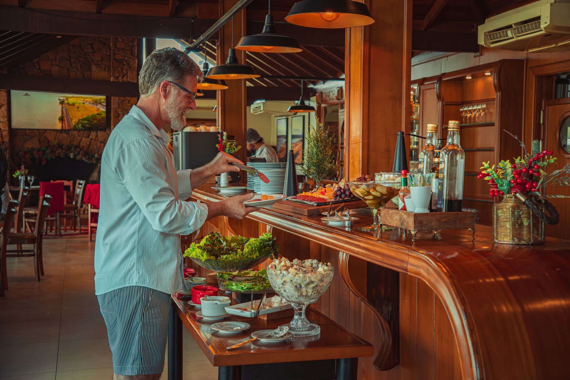 Do almoço ao jantar, o buffet traz pratos de inspiração regional e autoral, celebrando a comida caseira, colonial e a culinária regional gaúcha, com marcante influência italiana. A cada dia, um verdadeiro festival de sabores diferentes, pensado para surpreender o paladar. Aos sábados, no almoço, o destaque fica por conta do nosso tradicional costelão ao fogo de chão, cozido lentamente por 8 horas, servido no Restaurante Bass ao som de uma autêntica música gaúcha, criando uma experiência única e cheia de identidade.