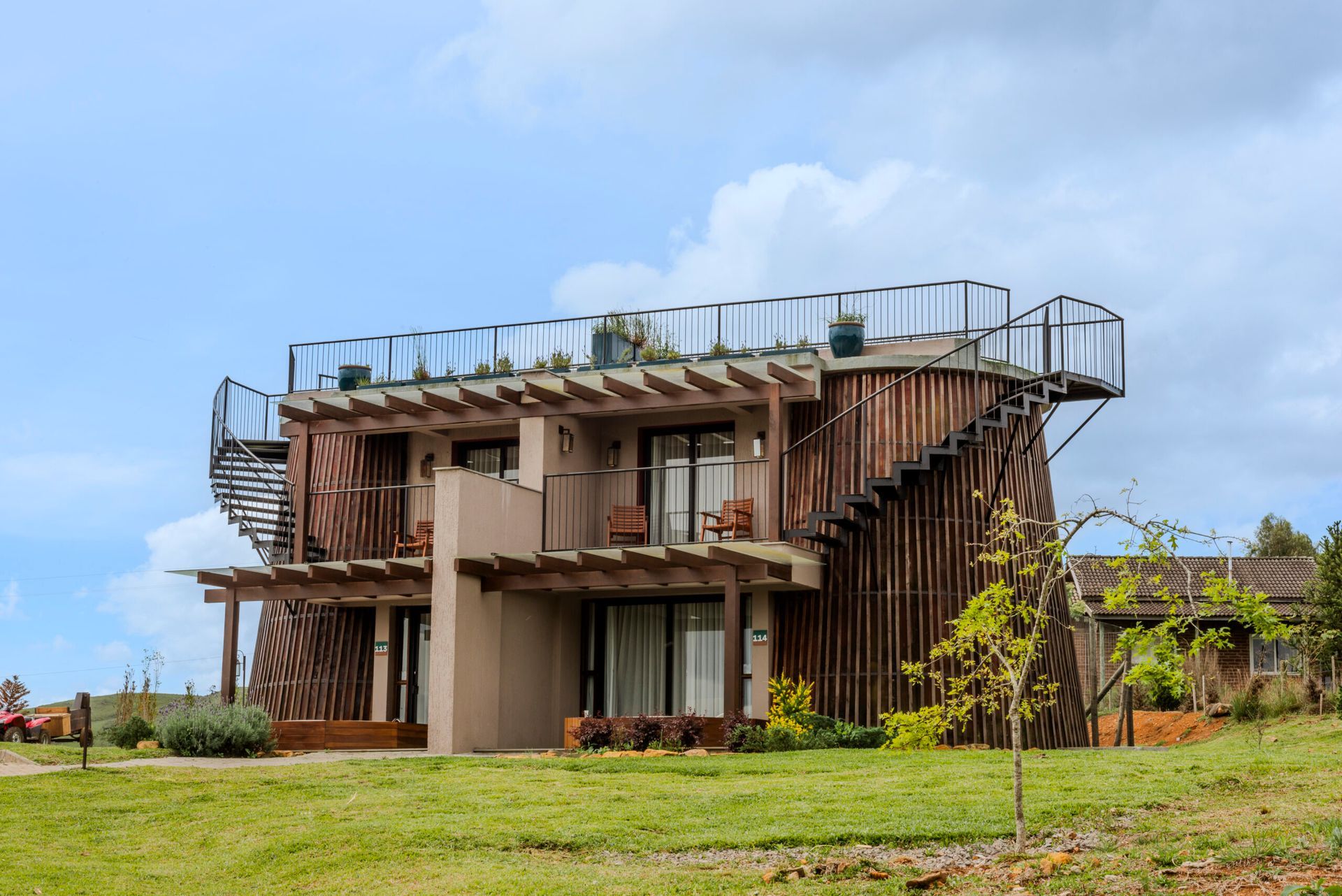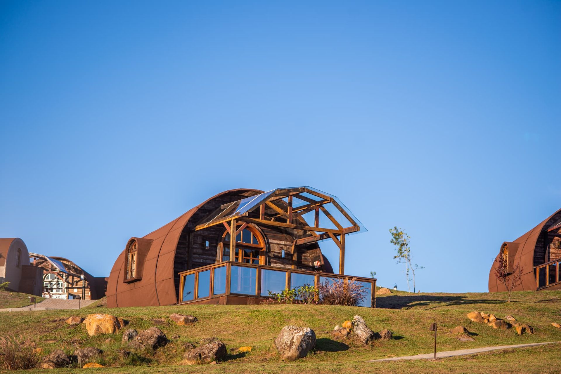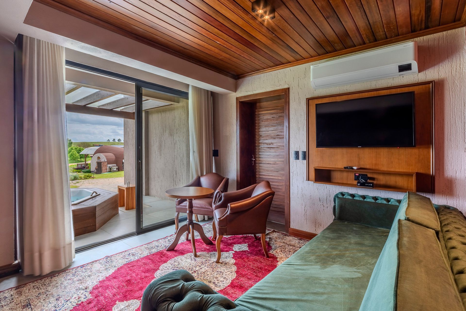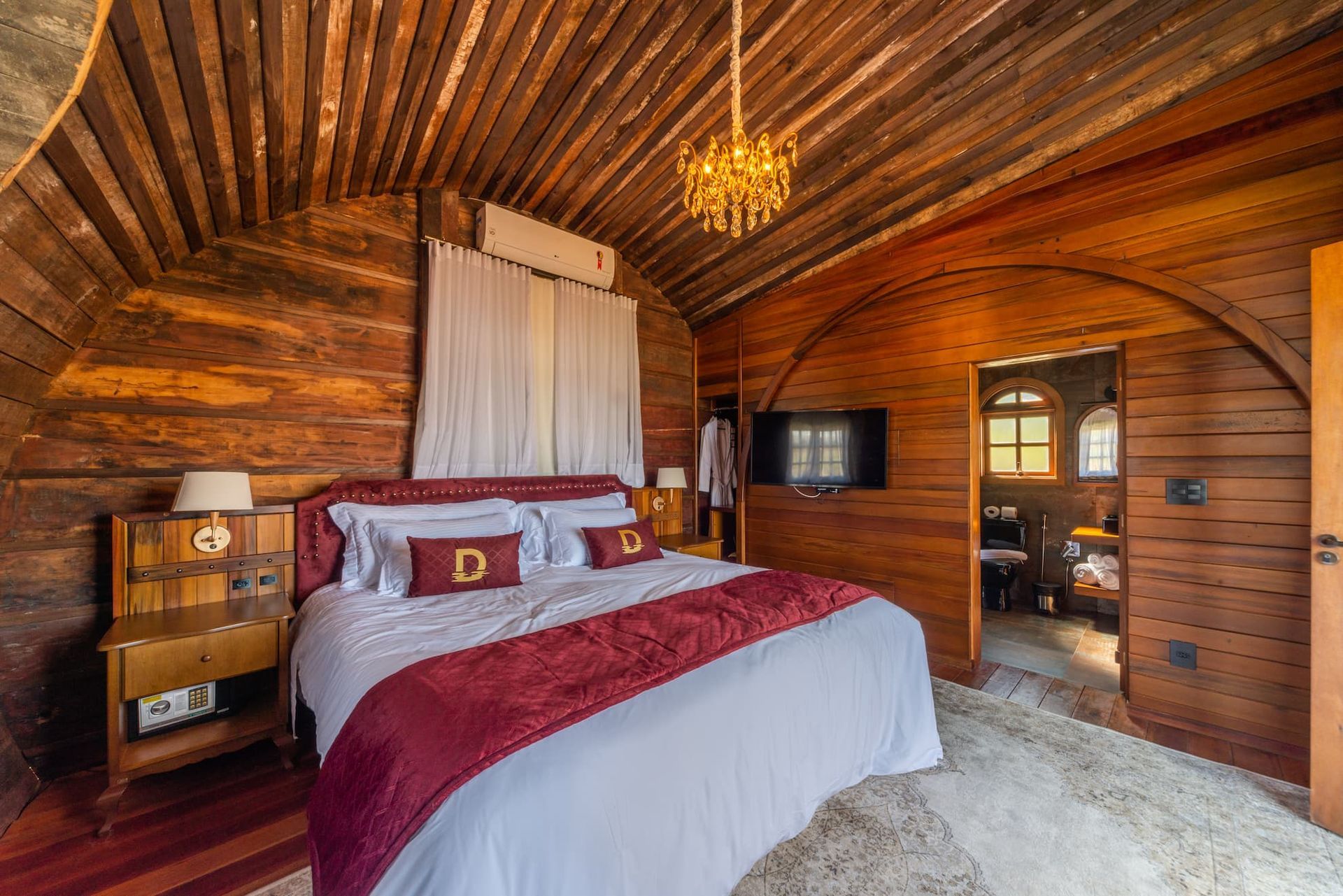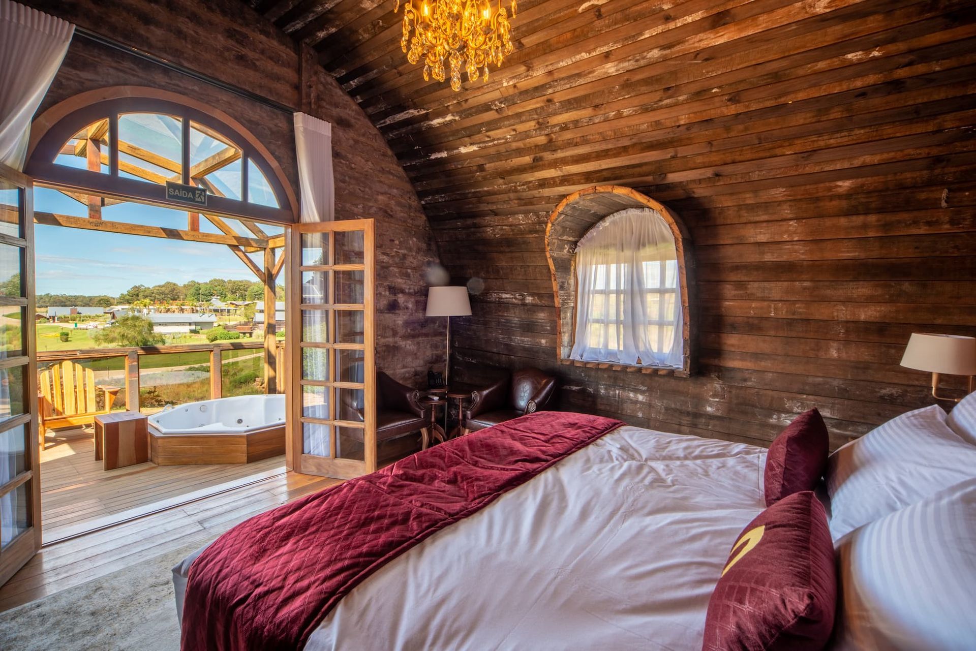 A Pipa é uma acomodação de 37m² com deck coberto e hidromassagem, projetada com uma arquitetura inspirada em um tonel de vinho, oferecendo todo o conforto que você merece.