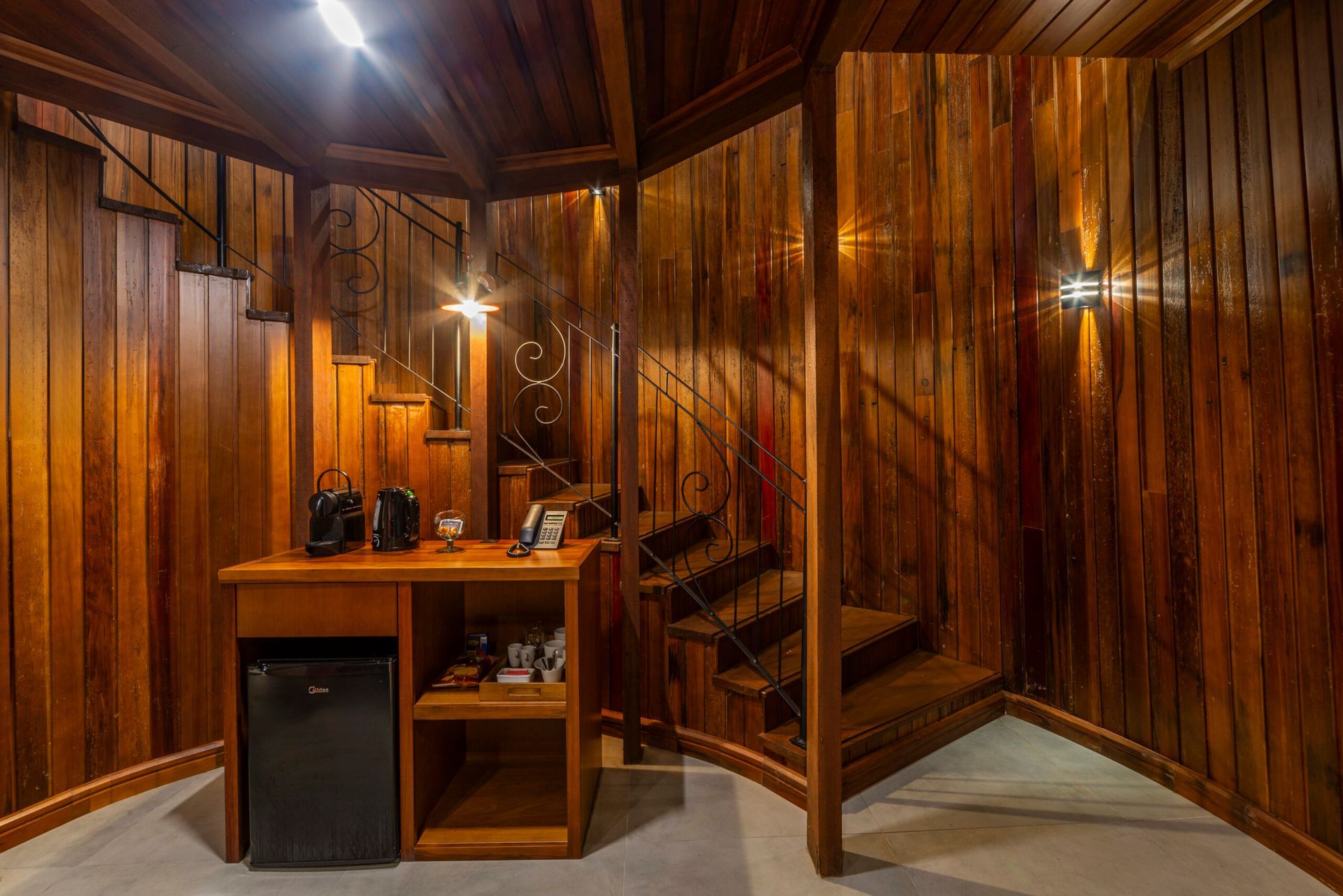 O 1º andar possui sala de estar, sofá cama e hidromassagem, o 2º andar quarto casal e o 3º andar um mirante para contemplar a paisagem em um amplo estar com espreguiçadeira.