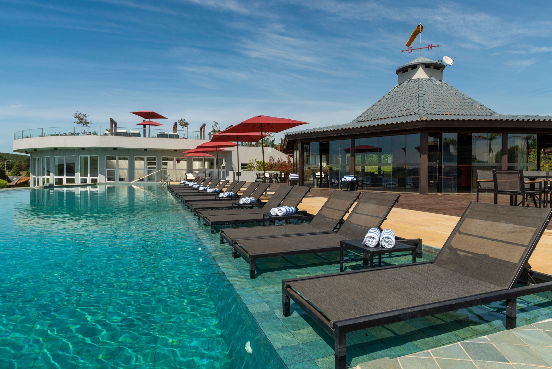 Comece o dia com um mergulho refrescante em meio a um cenário deslumbrante. Em nosso Resort, a piscina externa oferece uma vista panorâmica de tirar o fôlego, criando uma experiência única de conexão com a natureza. Desfrute de um ambiente acolhedor e inspirador, perfeito para relaxar e renovar as energias.